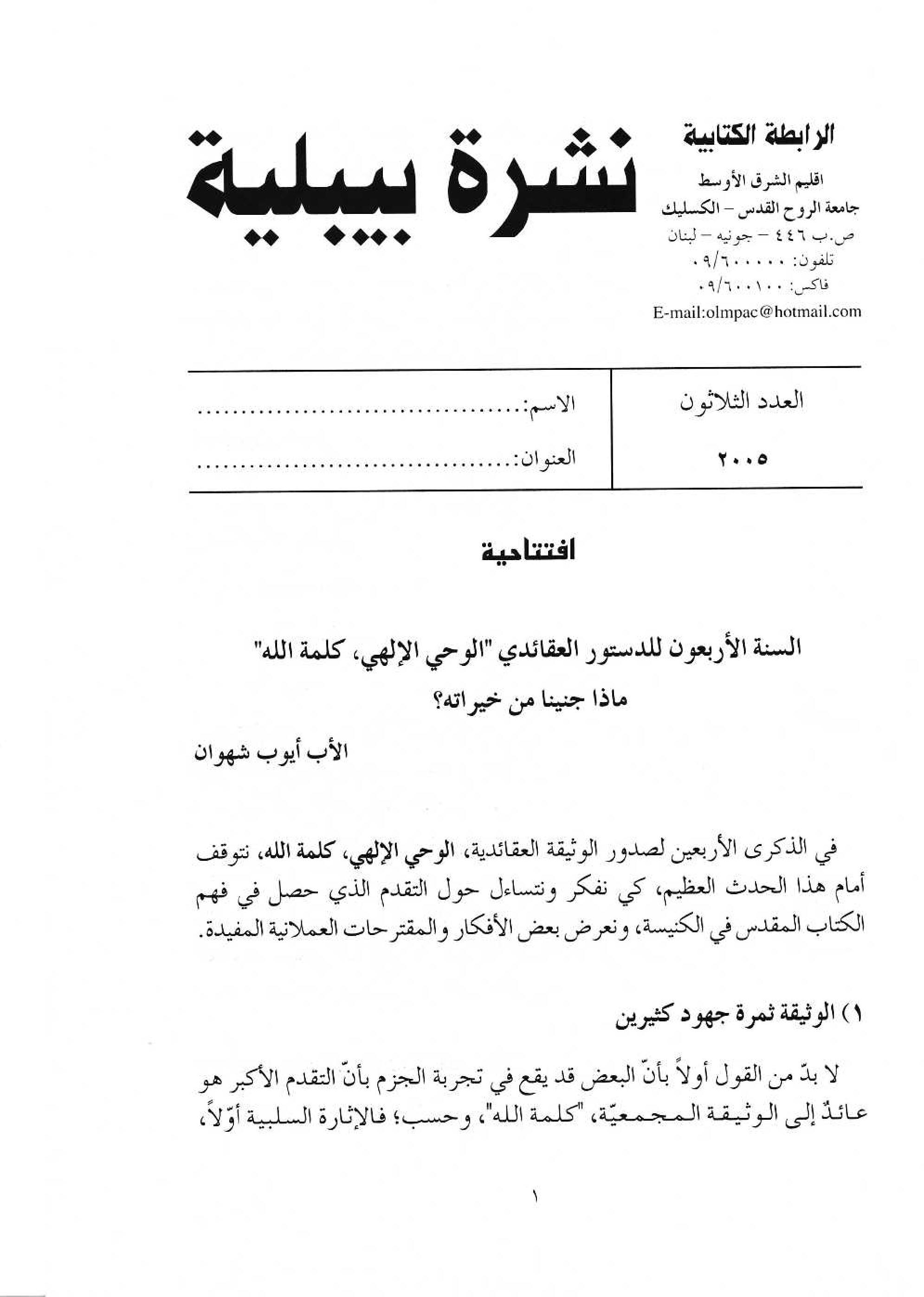 إفتتاحيّة السنة الأربعون للدستور العقائديّ "الوحي الإلهي، كلمة الله" ماذا جنينا من خيراته؟