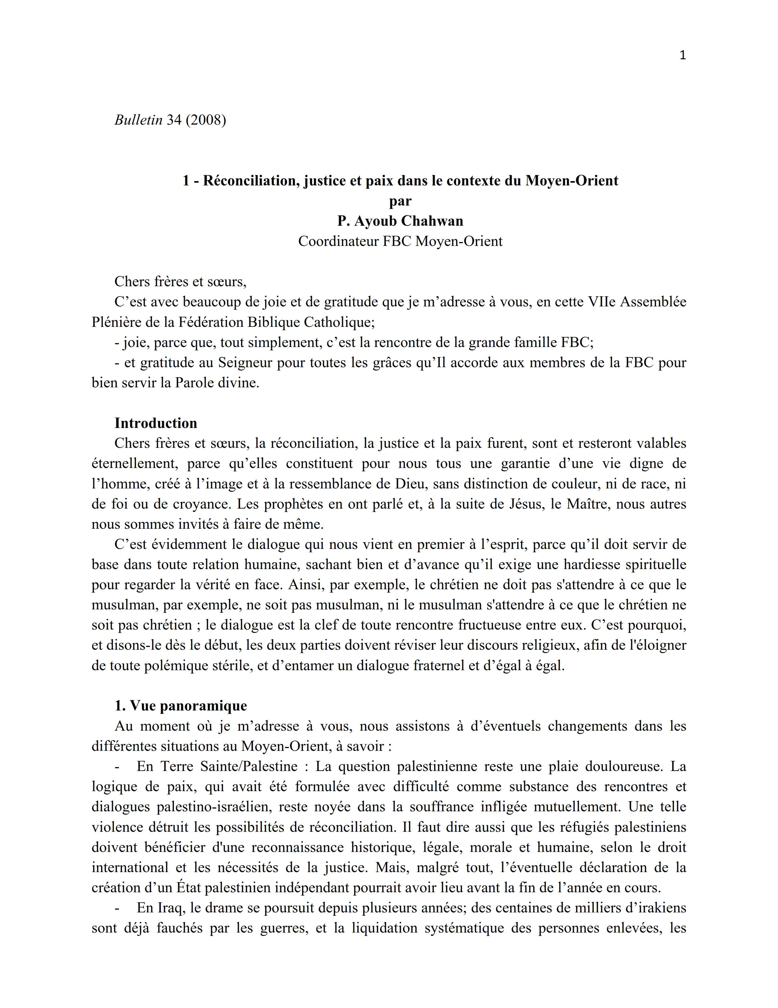 Réconciliation, jusitce et paix dans le contexte du Moyen-Orient